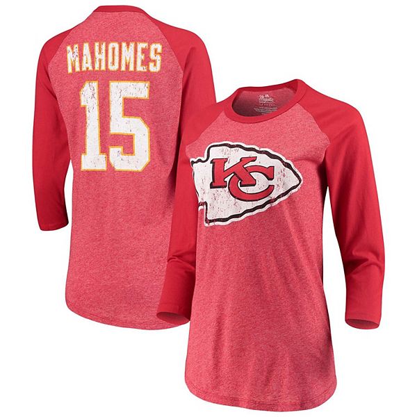 Women S Majestic Patrick Mahomes Red Kansas City Chiefs Player Name Number Raglan Tri Blend 3 4 Sleeve T Shirt